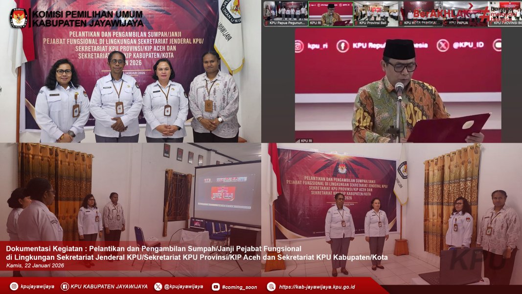 Pelantikan Pejabat Fungsional KPU menjadi momentum strategis dalam memperkuat kualitas sumber daya manusia di lingkungan Komisi Pemilihan Umum (KPU). Kegiatan ini tidak hanya menjadi agenda seremonial, tetapi juga wujud nyata komitmen kelembagaan KPU dalam menghadirkan aparatur yang profesional, berintegritas, dan siap mendukung penyelenggaraan pemilu yang demokratis, transparan, dan akuntabel. Melalui Pelantikan Pejabat Fungsional KPU, KPU Kabupaten Jayawijaya menegaskan perannya dalam membangun tata kelola pemilu yang modern dan berorientasi pada pelayanan publik. Pelantikan ini diharapkan mampu meningkatkan kapasitas kelembagaan, memperkuat kinerja organisasi, serta mendorong terciptanya proses pemilu yang berkualitas dan dipercaya masyarakat. Baca Juga : PPPK Baru KPU Kabupaten Jayawijaya Resmi Melapor dan Siap Bertugas Pelantikan dan Pengambilan Sumpah/Janji Pejabat Fungsional KPU Tahun 2026 Wamena, 22 Januari 2026 — KPU Kabupaten Jayawijaya mengikuti kegiatan Pelantikan dan Pengambilan Sumpah/Janji Pejabat Fungsional di lingkungan Sekretariat Jenderal KPU, Sekretariat KPU Provinsi/KIP Aceh, serta Sekretariat KPU Kabupaten/Kota Tahun 2026 yang dilaksanakan secara hybrid. Kegiatan ini menjadi bagian dari upaya nasional KPU dalam memperkuat struktur kelembagaan melalui penguatan jabatan fungsional, khususnya dalam mendukung pengelolaan pemilu yang profesional, efektif, dan berintegritas. Penguatan Profesionalisme dan Integritas Aparatur KPU Pelantikan pejabat fungsional merupakan langkah strategis untuk meningkatkan kompetensi aparatur KPU. Melalui pengambilan sumpah/janji jabatan, para pejabat fungsional diteguhkan komitmennya untuk menjalankan tugas dengan prinsip integritas, netralitas, dan tanggung jawab. Bagi KPU Kabupaten Jayawijaya, pelantikan ini menjadi momentum penting dalam membangun budaya kerja yang akuntabel dan responsif terhadap kebutuhan penyelenggaraan pemilu serta pelayanan publik. Penetapan Pejabat Fungsional Penata Kelola Pemilihan Umum Dalam kegiatan tersebut, KPU Kabupaten Jayawijaya menetapkan: Norbertha Huby, S.Sos Lerima Siregar, S.Sos sebagai Pejabat Fungsional Penata Kelola Pemilihan Umum di lingkungan Sekretariat KPU Kabupaten Jayawijaya. Penetapan ini diharapkan dapat memperkuat fungsi perencanaan, pengelolaan, dan pengendalian teknis penyelenggaraan pemilu di tingkat kabupaten. Komitmen KPU Kabupaten Jayawijaya dalam Mewujudkan Pemilu Berkualitas KPU Kabupaten Jayawijaya memandang pelantikan pejabat fungsional sebagai bagian dari transformasi kelembagaan menuju penyelenggaraan pemilu yang lebih profesional dan berdaya saing. Kehadiran pejabat fungsional yang kompeten diharapkan mampu meningkatkan kualitas tata kelola pemilu, mulai dari perencanaan hingga pelaksanaan. Dengan sumber daya manusia yang unggul, KPU Kabupaten Jayawijaya berkomitmen untuk terus menghadirkan proses pemilu yang jujur, adil, transparan, dan kredibel demi memperkuat demokrasi di Kabupaten Jayawijaya. Harapan dan Doa untuk Pejabat Fungsional yang Dilantik KPU Kabupaten Jayawijaya menyampaikan harapan agar amanah yang diemban dapat dijalankan dengan penuh integritas, profesionalisme, dan dedikasi. Semoga para pejabat fungsional yang dilantik mampu memberikan kontribusi terbaik dalam mendukung penyelenggaraan pemilu yang berkualitas serta meningkatkan kepercayaan publik terhadap institusi KPU. Simak Juga : PPPK dan PNS : Perbedaan Status, Hak, dan Proses Seleksi ASN ....