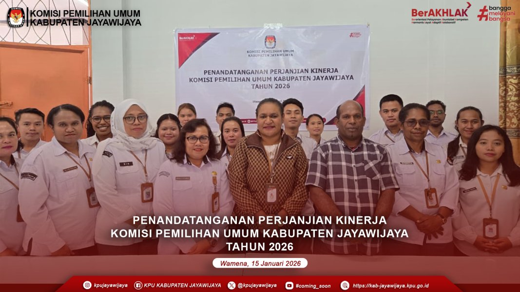 KPU Kabupaten Jayawijaya terus menunjukkan komitmen dalam membangun tata kelola kelembagaan yang profesional, akuntabel, dan berorientasi pada kinerja. Hal ini diwujudkan melalui Penandatanganan Perjanjian Kinerja Tahun 2026 sebagai langkah strategis untuk memperkuat pelaksanaan tugas dan fungsi penyelenggaraan pemilu di daerah. Penandatanganan perjanjian kinerja ini menjadi bagian penting dari upaya peningkatan kualitas kinerja KPU Kabupaten Jayawijaya, sekaligus mempertegas komitmen seluruh jajaran dalam mendukung penyelenggaraan pemilu yang transparan, efektif, dan berintegritas. Momentum ini tidak hanya bersifat administratif, tetapi juga menjadi fondasi dalam mewujudkan pelayanan publik yang lebih baik serta meningkatkan kepercayaan masyarakat terhadap penyelenggara pemilu. Baca Juga : Pelantikan Pejabat Fungsional KPU Kabupaten Jayawijaya : Penguatan Profesionalisme dan Integritas Aparatur Pemilu Komitmen KPU Kabupaten Jayawijaya dalam Meningkatkan Kinerja Organisasi Perjanjian kinerja merupakan instrumen manajemen yang digunakan untuk memastikan setiap unit kerja memiliki target yang jelas, terukur, dan selaras dengan tujuan organisasi. Dalam konteks KPU Kabupaten Jayawijaya, perjanjian kinerja menjadi pedoman bagi seluruh jajaran dalam menjalankan tugas penyelenggaraan pemilu secara optimal. Melalui penandatanganan perjanjian kinerja tahun 2026, KPU Kabupaten Jayawijaya menegaskan komitmen untuk: Meningkatkan profesionalisme aparatur penyelenggara pemilu Memperkuat akuntabilitas dan transparansi kinerja Mengoptimalkan pelayanan kepada masyarakat dan pemangku kepentingan Menjaga integritas dan independensi lembaga Langkah ini sejalan dengan prinsip tata kelola pemerintahan yang baik (good governance) serta nilai-nilai dasar aparatur sipil negara yang menekankan integritas, kolaborasi, dan orientasi pada hasil. Strategi Penguatan Tata Kelola Penyelenggaraan Pemilu Dalam penyelenggaraan pemilu, kualitas tata kelola kelembagaan menjadi faktor penentu keberhasilan. KPU Kabupaten Jayawijaya memahami bahwa pemilu yang berkualitas tidak hanya ditentukan oleh aspek teknis, tetapi juga oleh sistem manajemen organisasi yang solid. Perjanjian kinerja tahun 2026 dirancang untuk memperkuat berbagai aspek strategis, antara lain: 1. Peningkatan Akuntabilitas Kinerja Setiap unit kerja dan individu di lingkungan KPU Kabupaten Jayawijaya memiliki target kinerja yang jelas. Hal ini memungkinkan evaluasi yang objektif terhadap capaian kerja, sekaligus mendorong budaya kerja yang lebih disiplin dan bertanggung jawab. 2. Penguatan Integritas Penyelenggara Pemilu Integritas merupakan nilai utama dalam penyelenggaraan pemilu. Dengan perjanjian kinerja, seluruh jajaran KPU Kabupaten Jayawijaya berkomitmen menjaga netralitas, independensi, dan profesionalisme dalam setiap tahapan pemilu. 3. Sinergi Internal dan Eksternal Penandatanganan perjanjian kinerja juga mendorong terbangunnya sinergi antarunit kerja serta kolaborasi dengan berbagai pihak, termasuk Bawaslu, pemerintah daerah, dan masyarakat. Sinergi ini penting untuk memastikan penyelenggaraan pemilu berjalan efektif dan partisipatif. Perjanjian Kinerja sebagai Fondasi Pemilu Berkualitas Pemilu yang berkualitas lahir dari proses penyelenggaraan yang terencana, terukur, dan diawasi secara ketat. Dalam konteks ini, perjanjian kinerja menjadi instrumen penting untuk memastikan seluruh tahapan pemilu dilaksanakan sesuai dengan prinsip langsung, umum, bebas, rahasia, jujur, dan adil (LUBER JURDIL). KPU Kabupaten Jayawijaya menempatkan perjanjian kinerja sebagai bagian dari reformasi birokrasi dan modernisasi tata kelola pemilu. Dengan sistem kerja yang lebih terstruktur, lembaga diharapkan mampu menghadapi berbagai tantangan penyelenggaraan pemilu di masa depan. ....