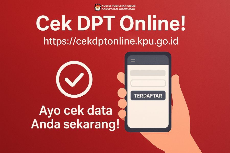 Cek DPT Online KPU Jayawijaya: Pastikan Nama Anda Terdaftar di Data Pemilih Tetap (DPT) untuk Pemilu/Pilkada melalui cekdptonline.kpu.go.id. PDPB