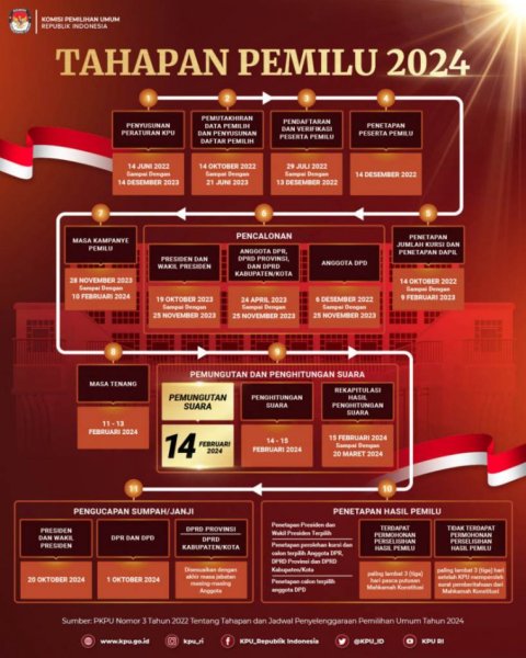 Pemilu merupakan momen penting dalam kehidupan demokrasi Indonesia. Setiap tahapan pemilu disusun secara sistematis oleh (KPU Komisi Pemilihan Umu) agar proses berjalan transparan, jujur, dan adil. Mulai dari penetapan daftar pemilih, pendaftaran peserta pemilu, kampanye, pemungutan suara, hingga penghitungan hasil akhir, semua tahapan memiliki peran penting dalam menjamin hak pilih masyarakat. Melalui pemilu, rakyat Indonesia menyalurkan kedaulatannya secara langsung untuk memilih pemimpin dan wakil rakyat.