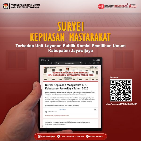 Melalui survei ini, kami ingin mendengar langsung pendapat, saran, dan masukan dari Bapak/Ibu/ Saudara sekalian terkait pelayanan kami. Setiap jawaban yang diberikan akan menjadi bahan evaluasi penting untuk meningkatkan mutu pelayanan KPU Jayawijaya ke depan. ✨